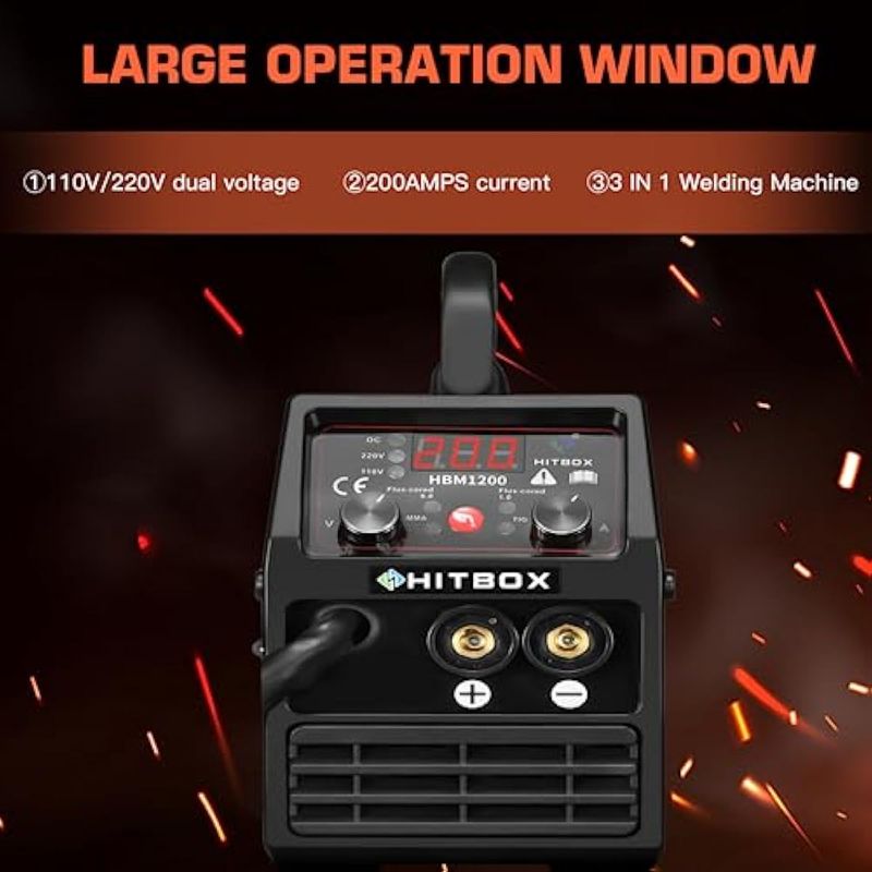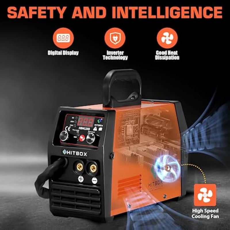 HITBOX Soldador SYN Mig 3 en 1 ARC Lift Tig Mig Gasless Dual Voltage 110V/220V 120A Sin Flujo de Gas