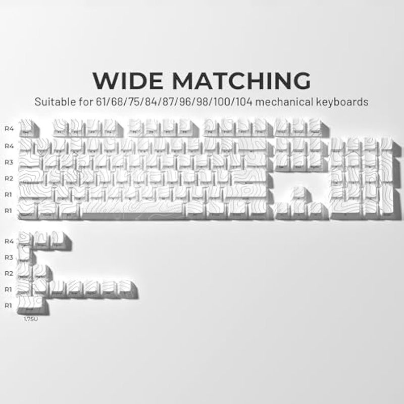 Amplia selección de teclas: nuestro juego de teclas de teclado de 118 teclas está diseñado para adaptarse a teclados de tamaño completo, 75 teclados y 60 teclados. Estas teclas son compatibles con teclado Wooting, Redragon, AULA, RK, etc., así como con cualquier interruptor de llave con un eje en forma de cruz.