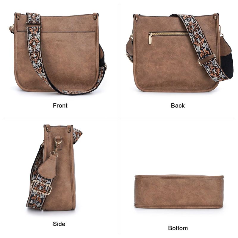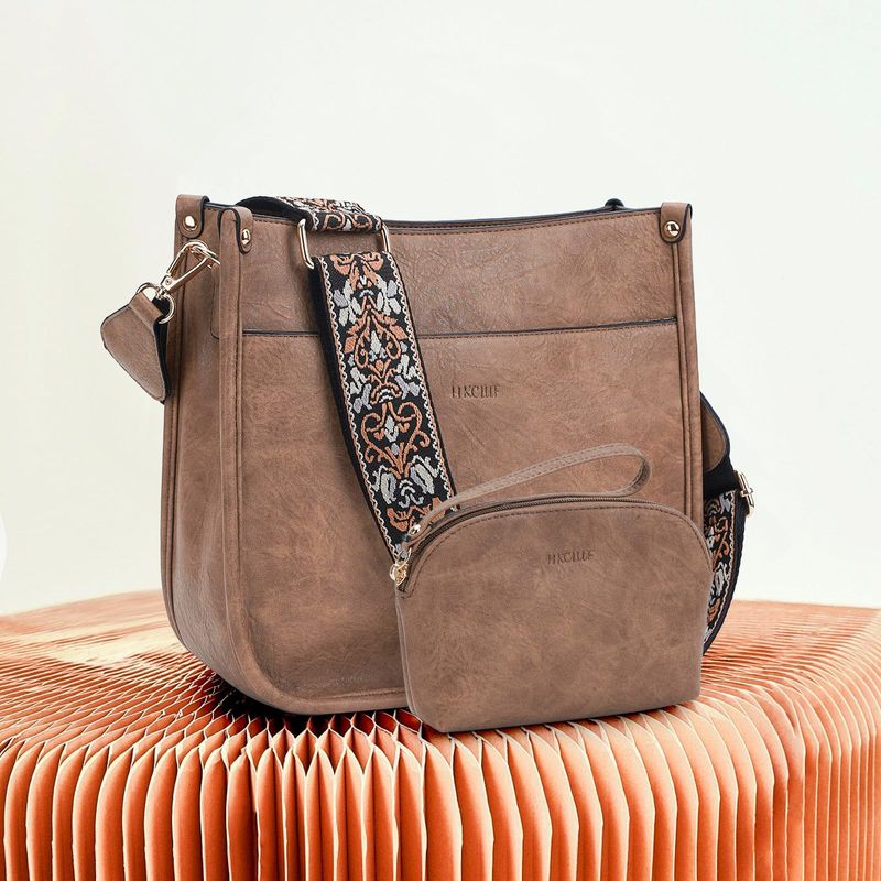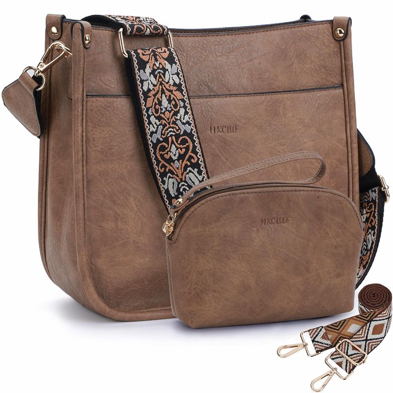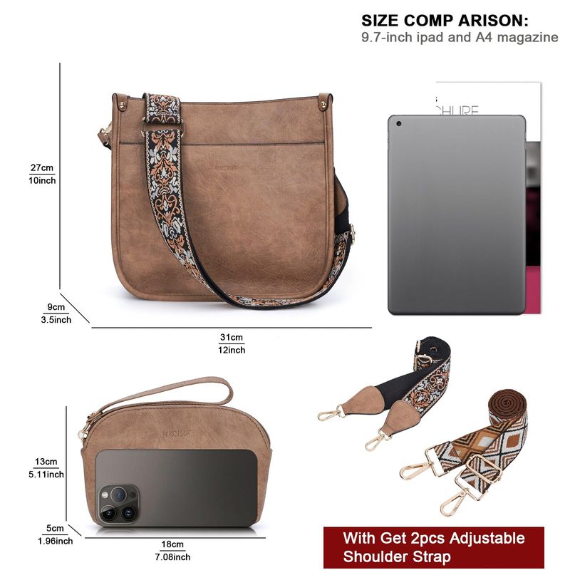 HKCLUF Bolso cruzado para mujer, 2 piezas, de cuero, con 2 correas ajustables de leopardo, bolsa