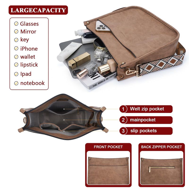 EQUIPAJEMOCHILASHKCLUF Bolso cruzado para mujer, 2 piezas, de cuero, con 2 correas ajustables de leopardo, bolsa