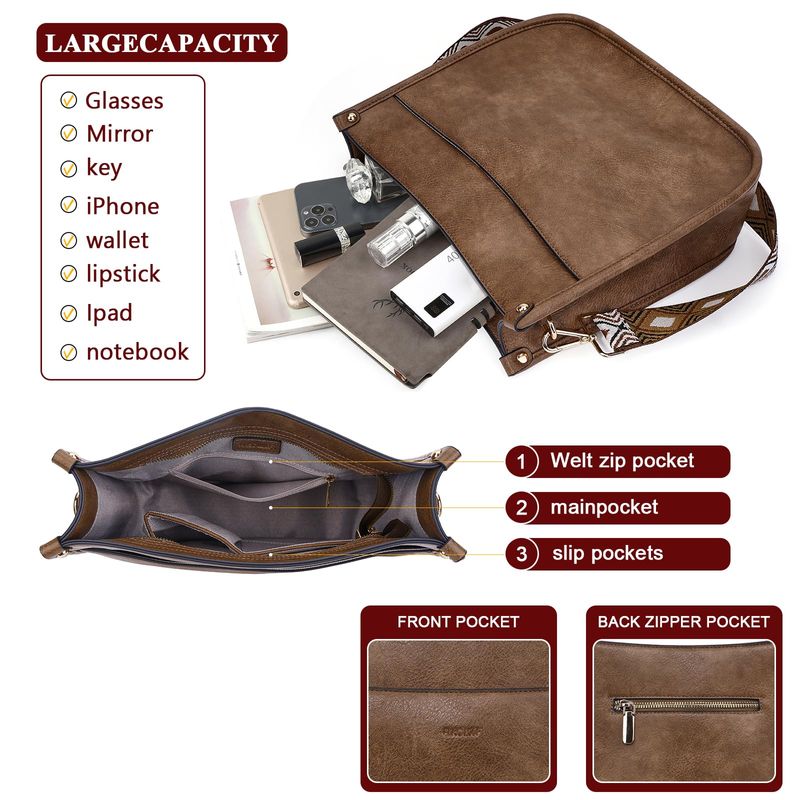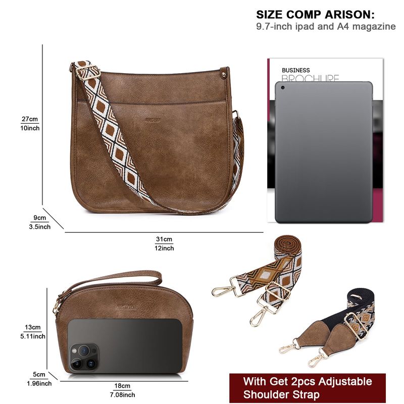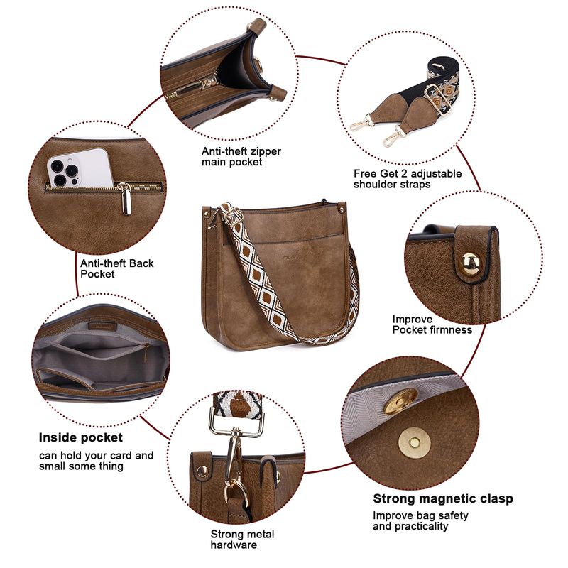 EQUIPAJEMOCHILASHKCLUF Bolso cruzado para mujer, 2 piezas, de cuero, con 2 correas ajustables de leopardo, bolsa