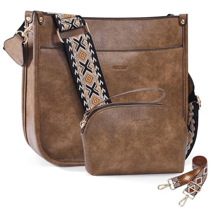 HKCLUF Bolso cruzado para mujer, 2 piezas, de cuero, con 2 correas ajustables de leopardo, bolsa