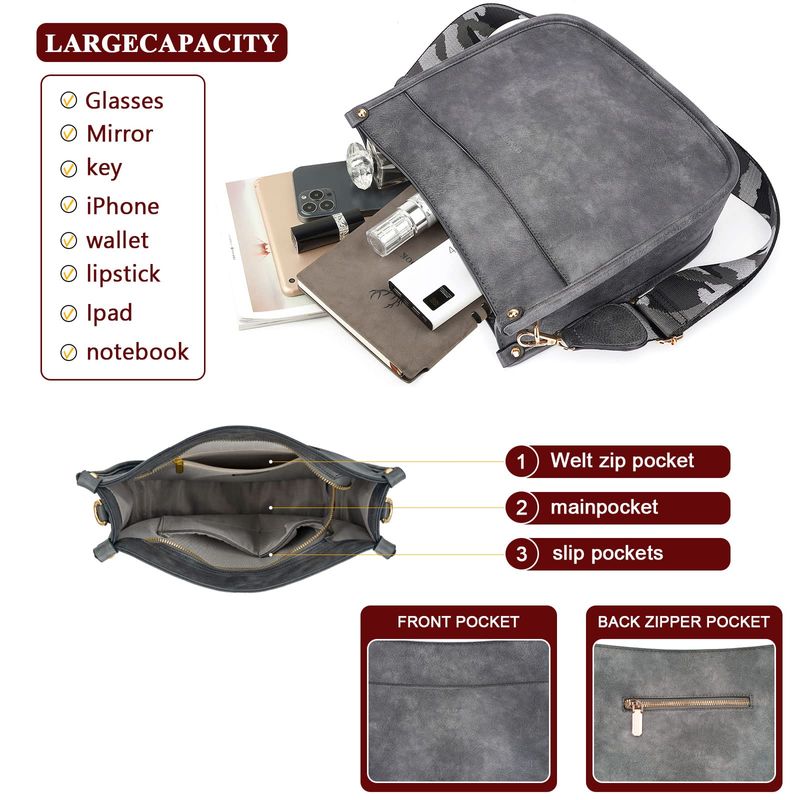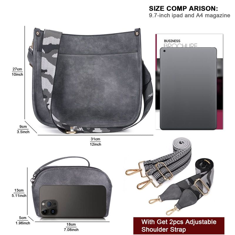 EQUIPAJEMOCHILASHKCLUF Bolso cruzado para mujer, 2 piezas, de cuero, con 2 correas ajustables de leopardo, bolsa