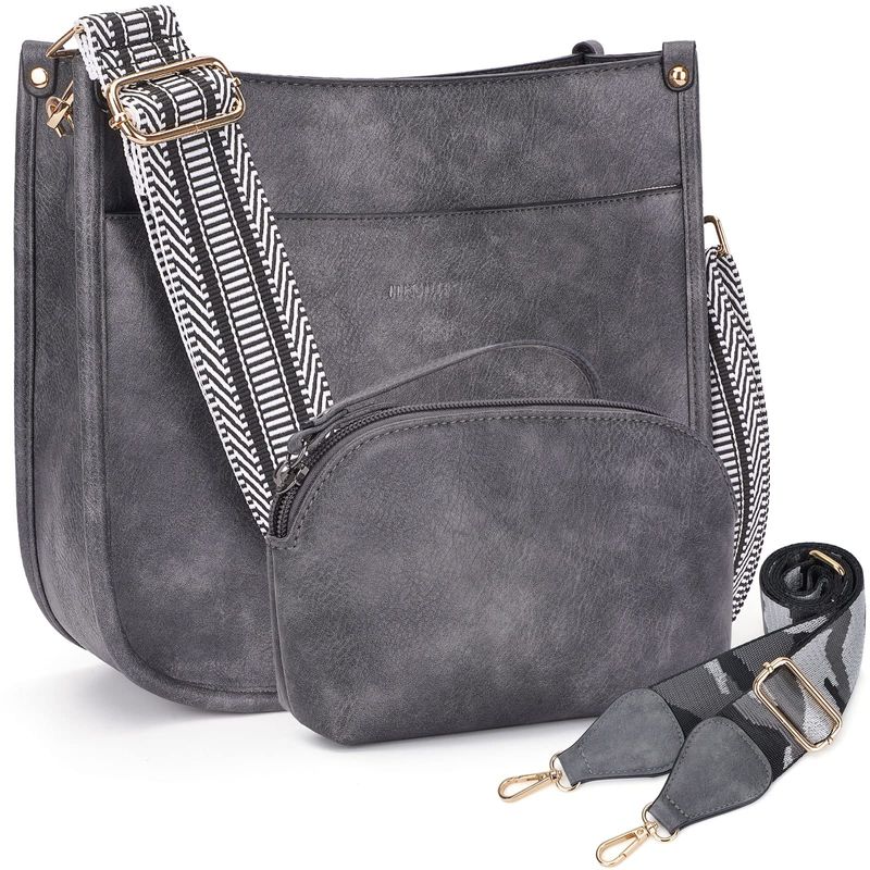 HKCLUF Bolso cruzado para mujer, 2 piezas, de cuero, con 2 correas ajustables de leopardo, bolsa