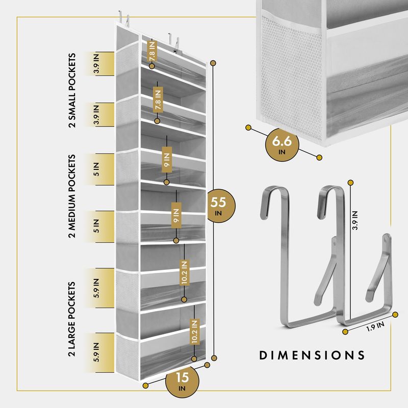 HOMELUX THEORY 1 organizador para colocar sobre la puerta de 55 x 14 x 6.7 pulgadas, 6 bolsillos