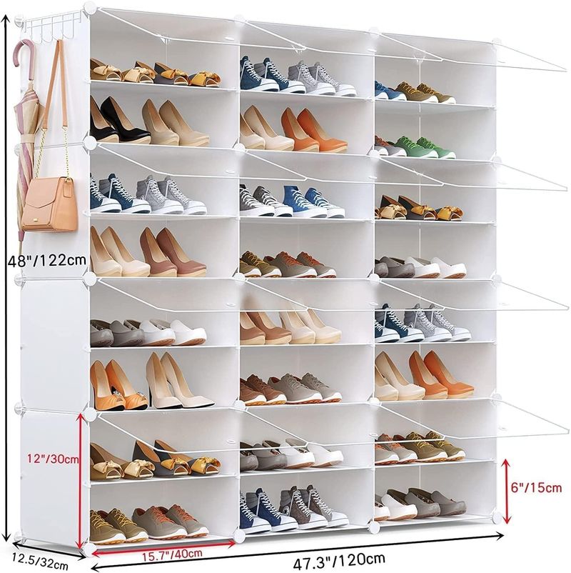 ?32 pares de almacenamiento de zapatos?Tamaño: 32 pulgadas de ancho x 12.5 pulgadas de profundidad x 48 pulgadas de alto. Nuestro zapatero proporciona un gran espacio para almacenar zapatos, que puede contener 32 pares de zapatos. Puede almacenar todo tipo de zapatos de tacón alto, zapatos altos, zapatos deportivos, zapatos deportivos, botas, suficiente para satisfacer las necesidades diarias de ti y tu familia, hacer que tu hogar esté ordenado y ordenado