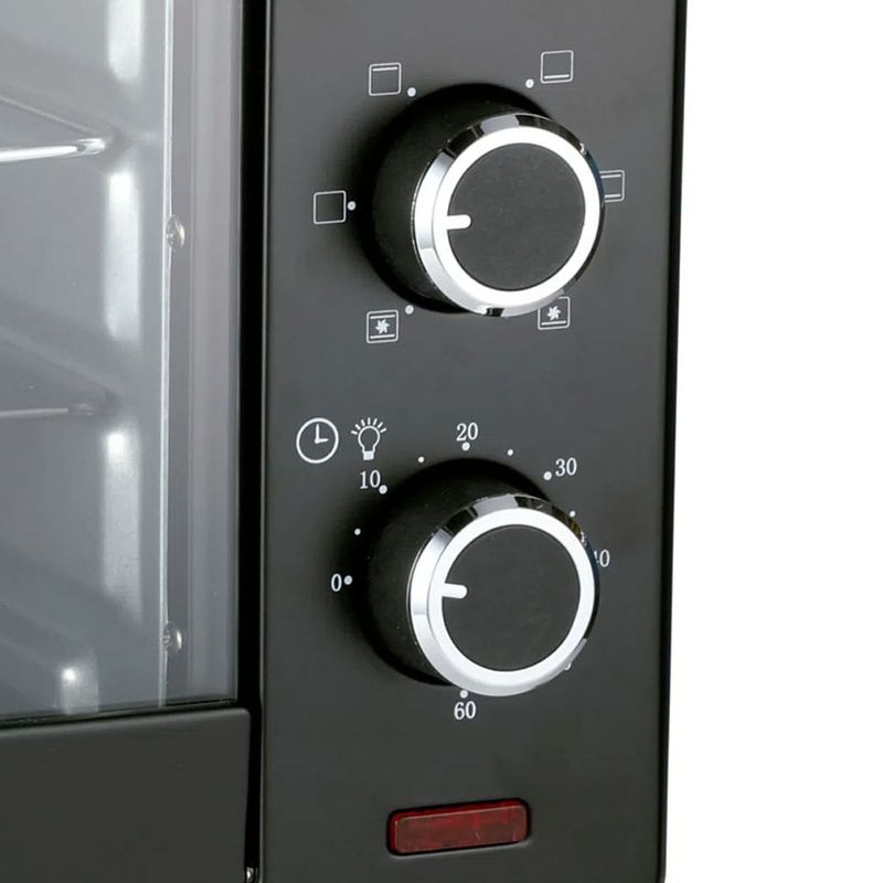 Entre sus funciones se destacada la de convección ya que te permite cocinar con calor radiante y aire caliente logrando que tus alimentos puedan cocinarse en menos tiempo, tengan una cocción uniforme, ahorres energía y puedas disfrutar al sabor al máximo de todos tus platos.