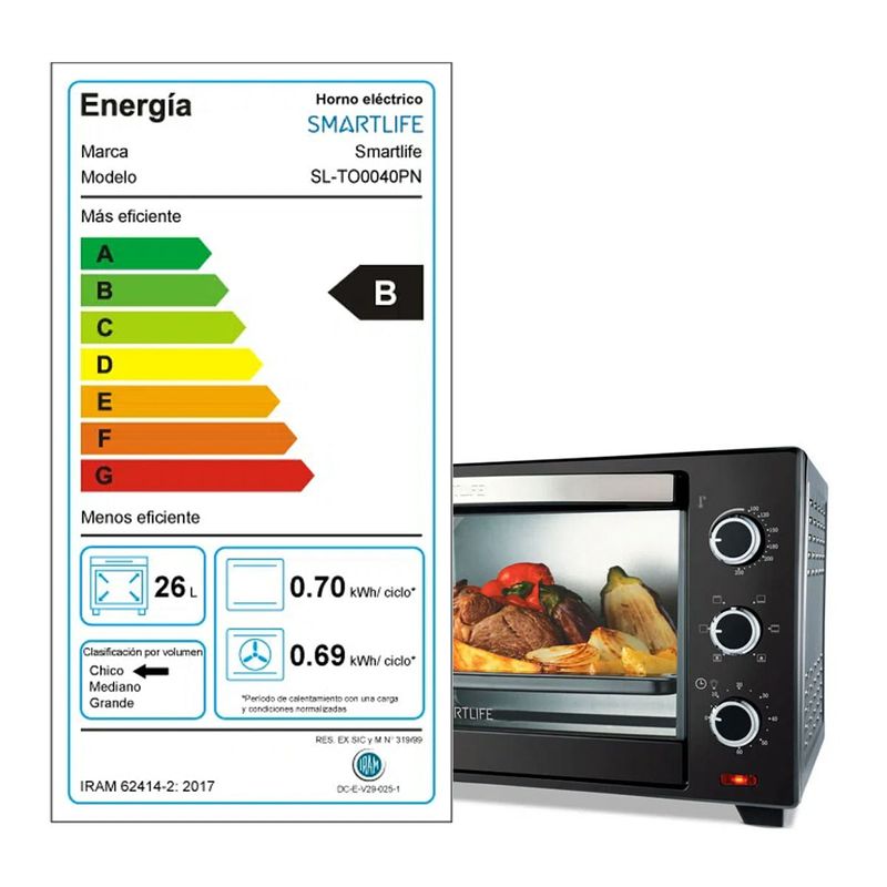Descubrí nuevos sabores y ponele tu toque personal a los clásicos de siempre haciendo tus comidas en el Horno de Mesa Eléctrico de Smartlife. Con capacidad de 40 litros y un tamaño reducido que se adapta a cualquier cocina, cuenta con 5 funciones de cocción preseteadas, control de temperatura hasta 250° C, temporizador de 60 minutos con alarma sonora y muchísimas características más para volver a sentir la emoción de cocinar ¡de una manera totalmente diferente!