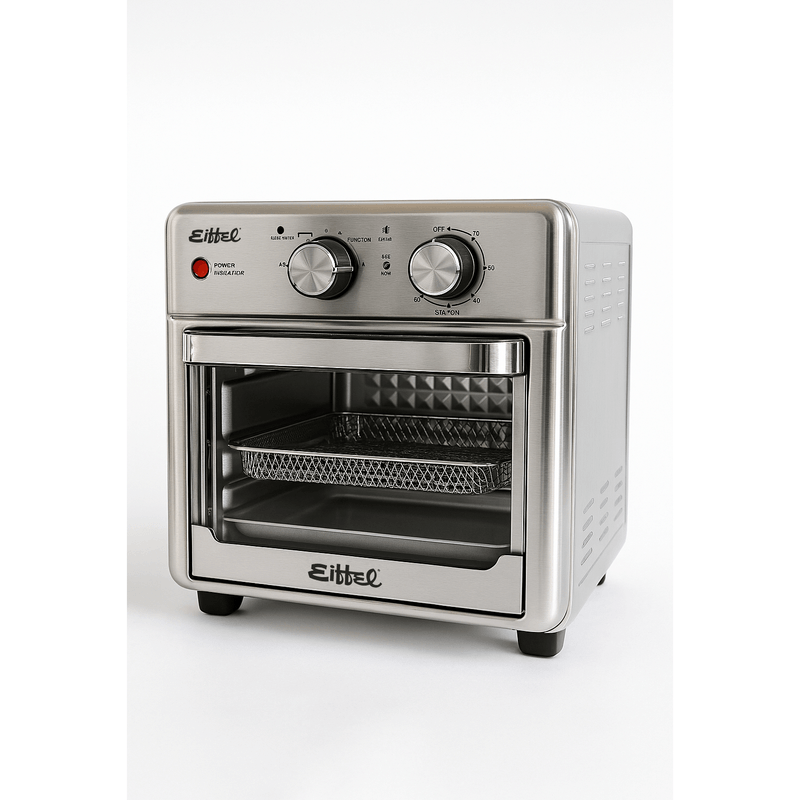 La Eiffel E-729 es un innovador electrodoméstico 2 en 1 diseñado para transformar tu forma de cocinar. Con una generosa capacidad de 15 litros, este horno y freidora de aire combina eficiencia, funcionalidad y estética moderna. Su construcción en acero inoxidable asegura durabilidad, fácil limpieza y un diseño elegante que realza cualquier cocina. Su sistema de aire caliente permite freír, asar, hornear y cocinar sin aceite, logrando resultados crujientes y sabrosos con menos grasa. Cuenta con temperatura regulable de 80 °C a 230 °C, adaptándose a una amplia variedad de recetas. El panel de control con perillas ofrece un manejo sencillo y confiable, ideal para uso doméstico diario.