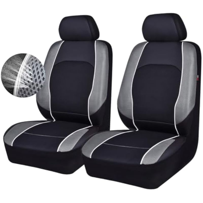 Piel sintética de alta calidad y malla de aire: cuero respetuoso con el medio ambiente, fácil de limpiar, protege las fundas de asiento de tu coche del polvo, arañazos y posibles daños. 100 lavable y transpirable.