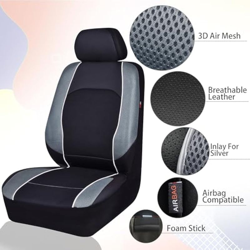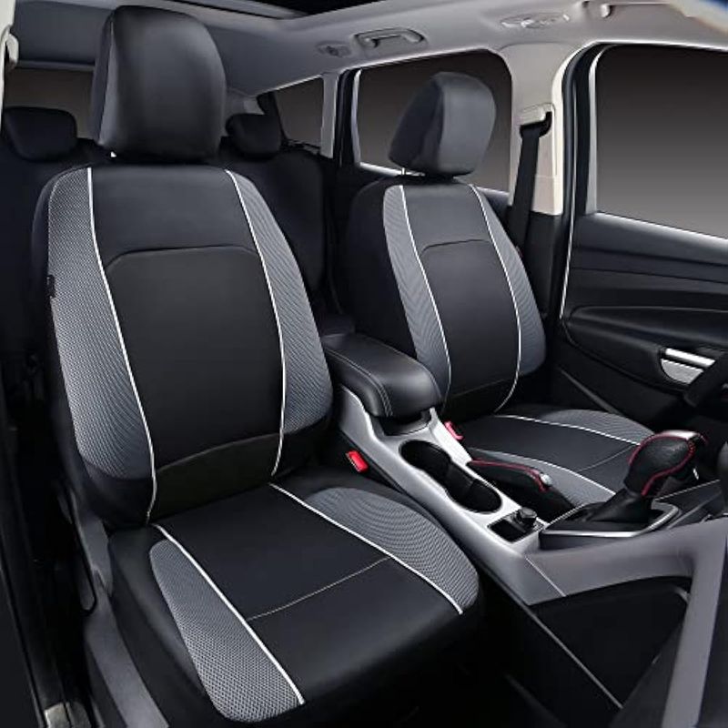 Diseño único: piel sintética con material de esponja de 0.197 in fundas de asiento completas, utilizando el material de protección del medio ambiente para hacerlo, disfruta del aire fresco durante tu conducción, piel sintética con malla de aire, transpirable y lavable, dos fundas delanteras con asientos traseros. 11 piezas en total.