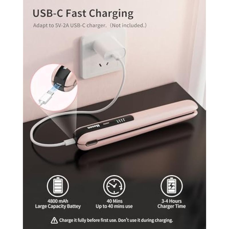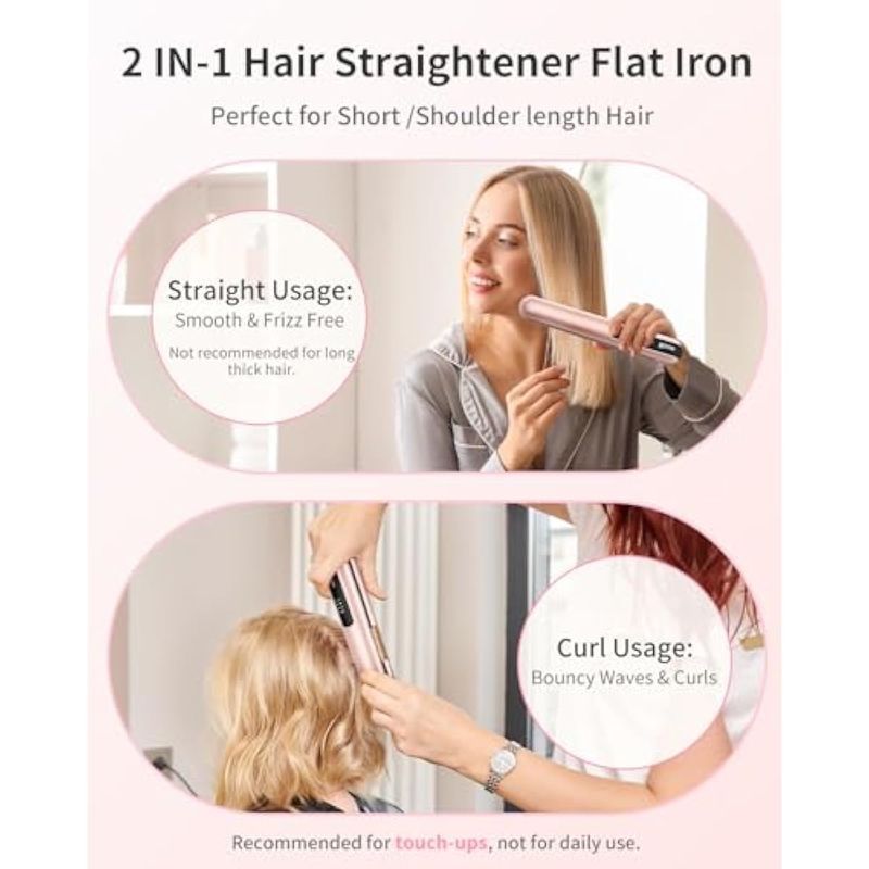 Hoson Plancha de pelo inalámbrica, mini plancha plana portátil de viaje para cabello corto, alisador