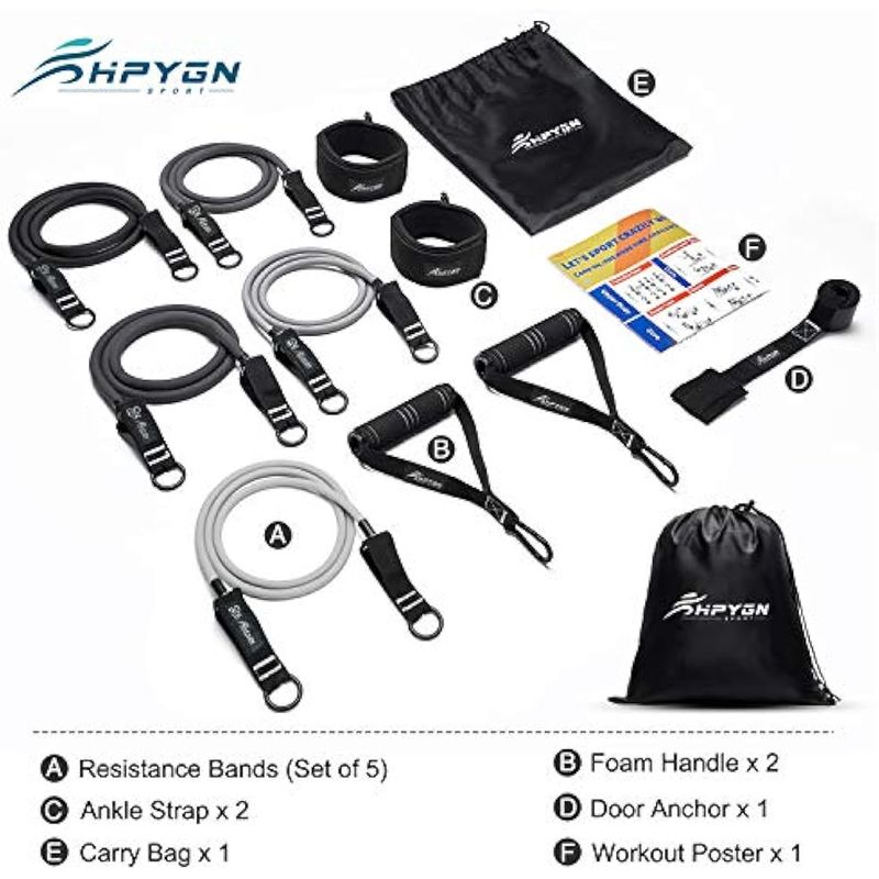 HPYGN - Juego de bandas de resistencia, 150 libras/200 libras/250 libras con asas, 5 bandas de