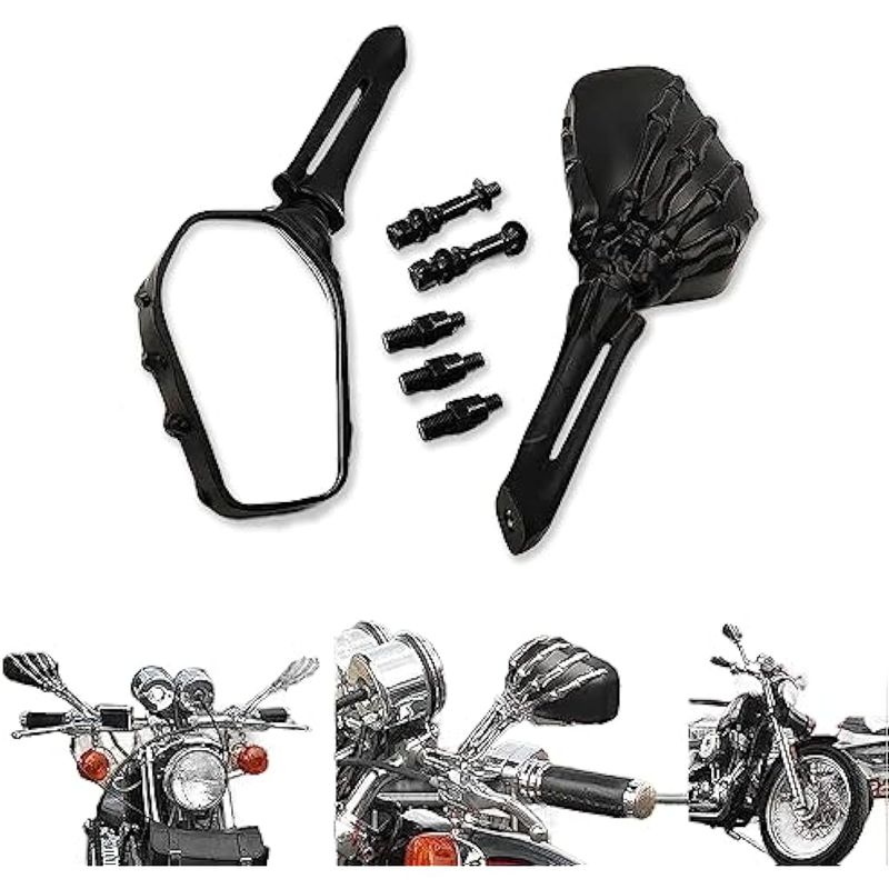 RODADOSMOTOSHTTMT MT333- Espejo de calavera negro compatible con Harley Heritage Sportster Dyna Glide Softail