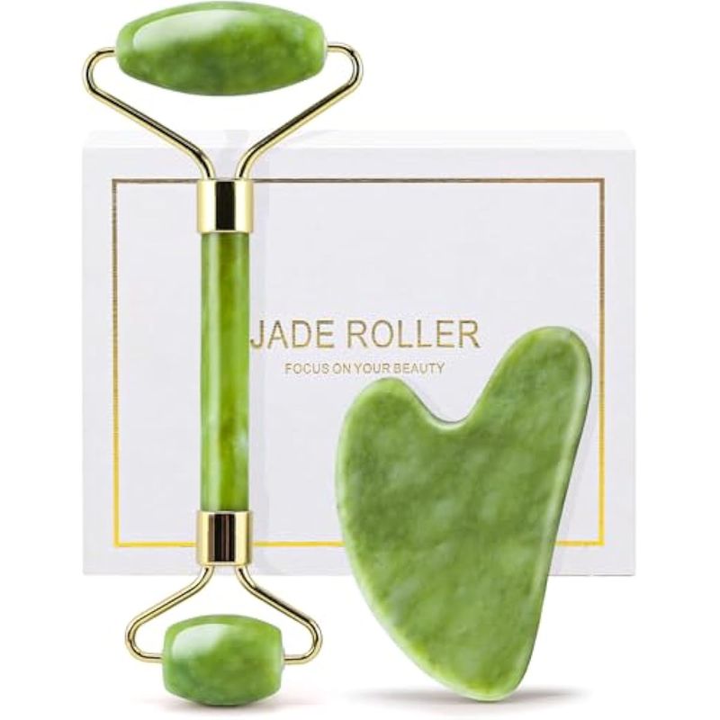 huefull Gua Sha - Juego de herramientas faciales y rodillos de jade para el cuidado de la piel,