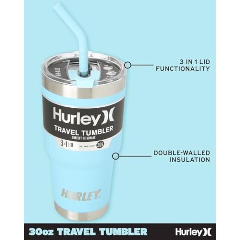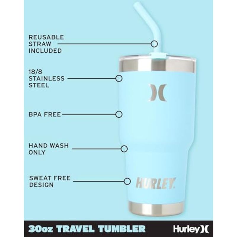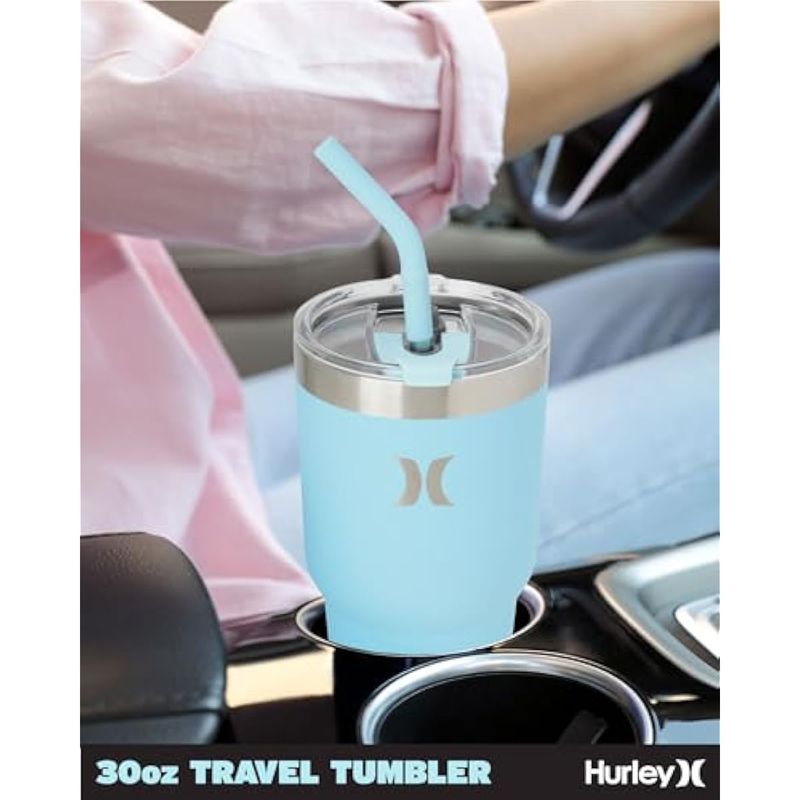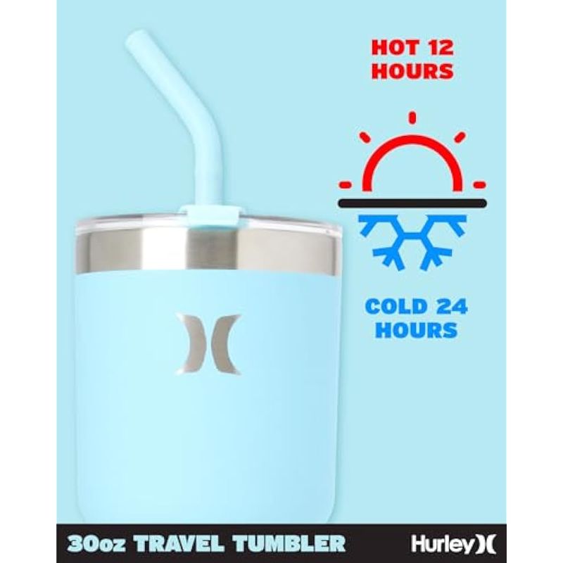 HURLEY TUMBLER THERMOS - TAZA DE VIAJE AISLADA AL VACíO DE DOBLE PARED DE 30 ONZAS, BOTELLA DE AGUA DE ACERO INOXIDABLE SIN BPA, A PRUEBA DE FUGAS, TAZA PARA CAFé CALIENTE Y FRíO, TAMAñO 30 ONZAS,