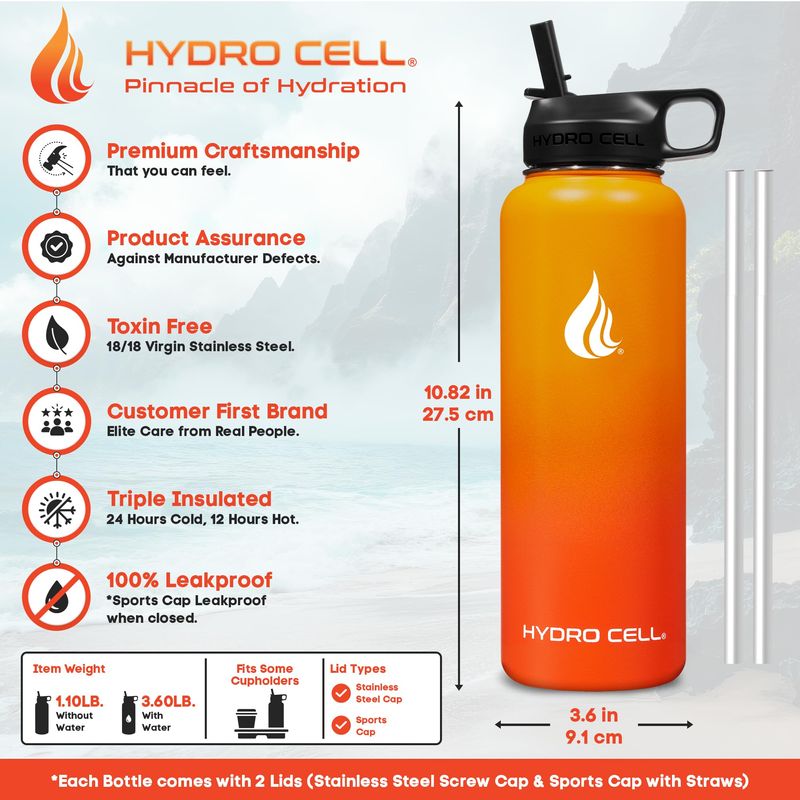 HYDRO CELL - Botella de agua con aislamiento térmico de acero inoxidable con pajilla, para bebidas