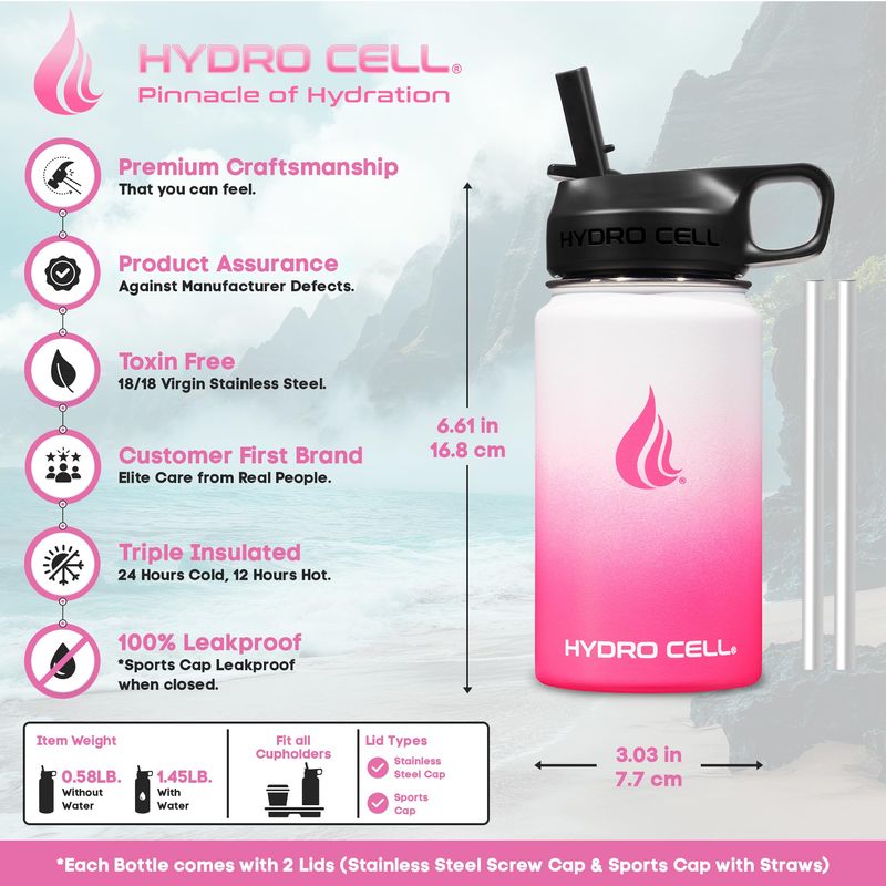 HYDRO CELL - Botella de agua con aislamiento térmico de acero inoxidable con pajilla, para bebidas