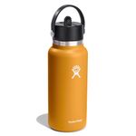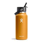 Hydro Flask Stainless Steel Wide Mouth Water Bottle with Flex Straw Lid and Double-Wall Vacuum