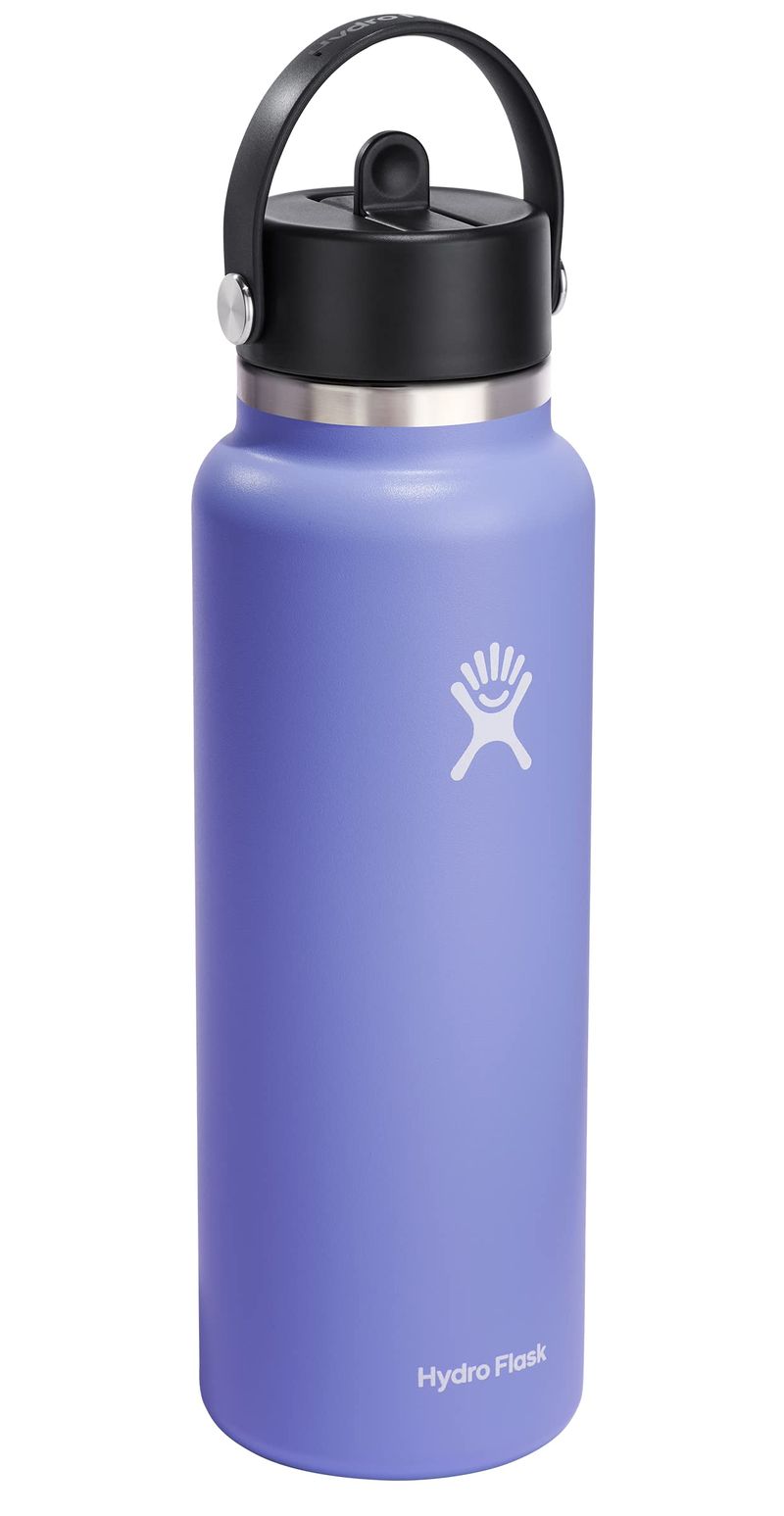HYDRO FLASK STAINLESS STEEL WIDE MOUTH WATER BOTTLE WITH FLEX STRAW LID AND DOUBLE-WALL VACUUM INSULATION