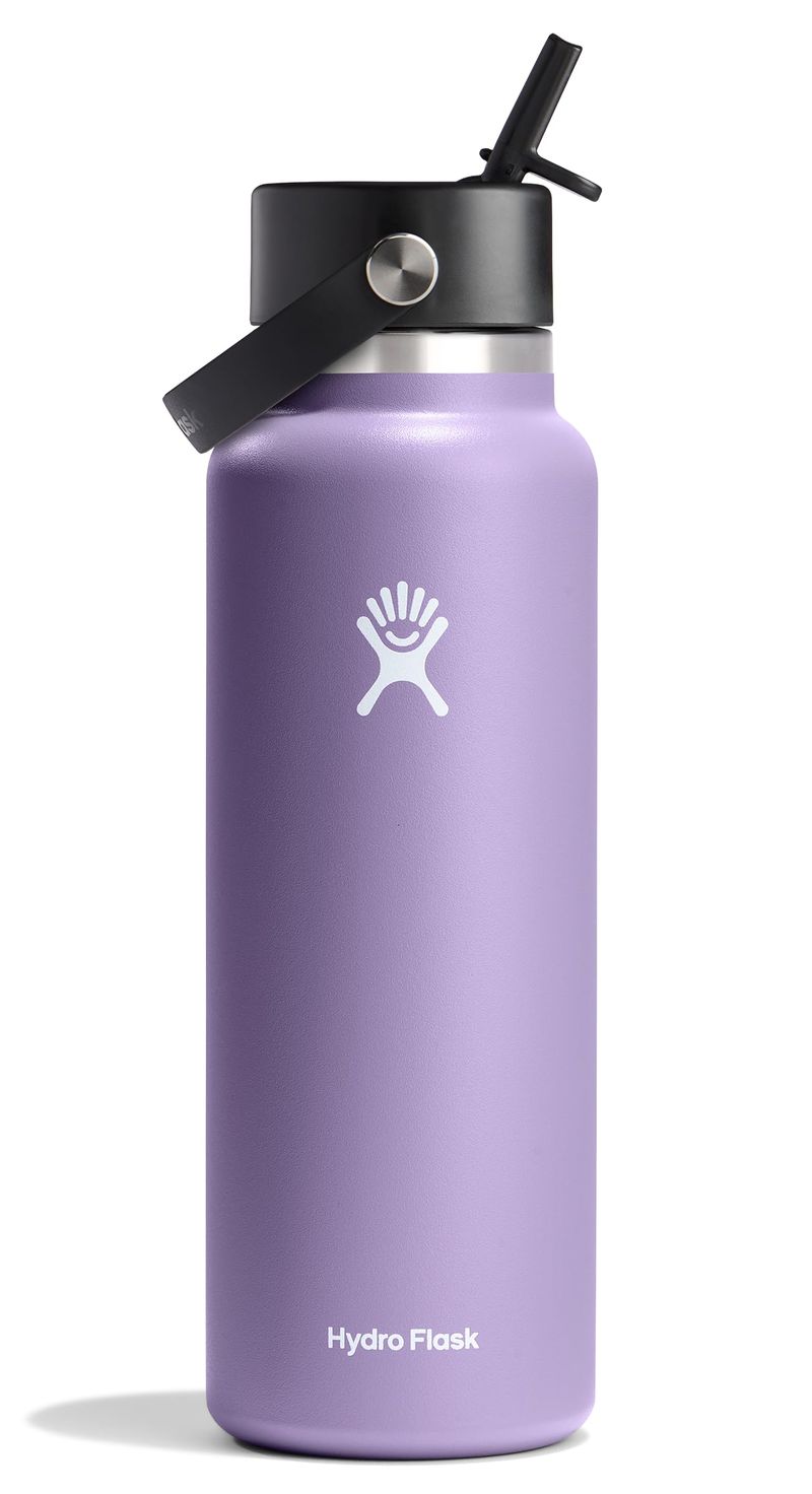 HYDRO FLASK STAINLESS STEEL WIDE MOUTH WATER BOTTLE WITH FLEX STRAW LID AND DOUBLE-WALL VACUUM INSULATION
