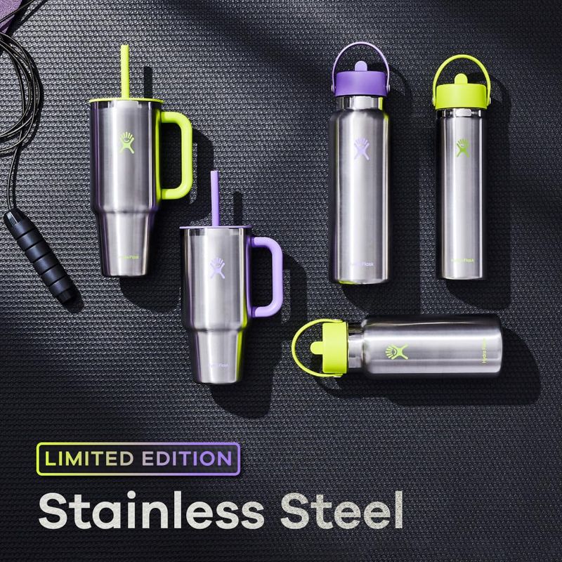 Hydro Flask Stainless Steel Wide Mouth Water Bottle with Flex Straw Lid and Double-Wall Vacuum