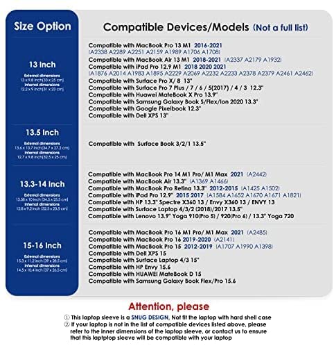 HYZUO - Funda para laptop de 12.3, 13, 13.3, 13.5, 15, 15.4 y 16 pulgadas con bolsa