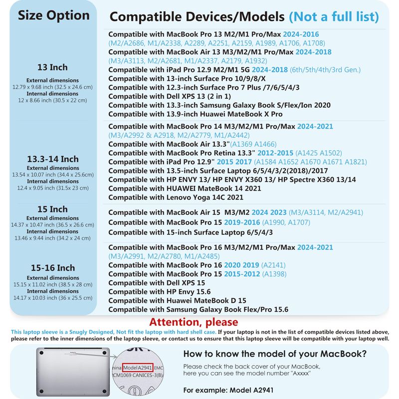 HYZUO - Funda para laptop de 12.3, 13, 13.3, 13.5, 15, 15.4 y 16 pulgadas con bolsa