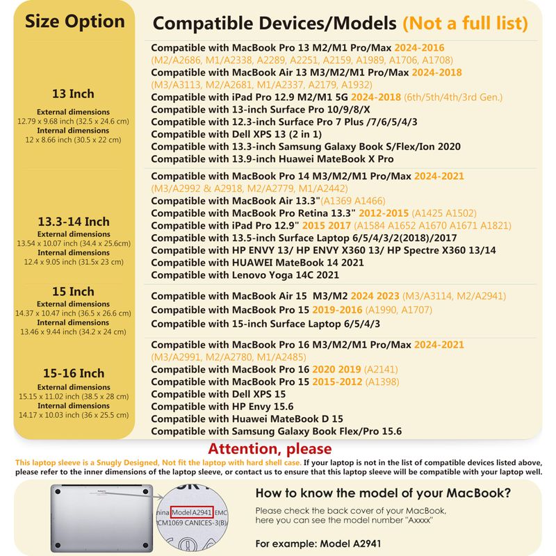 HYZUO - Funda para laptop de 12.3, 13, 13.3, 13.5, 15, 15.4 y 16 pulgadas con bolsa