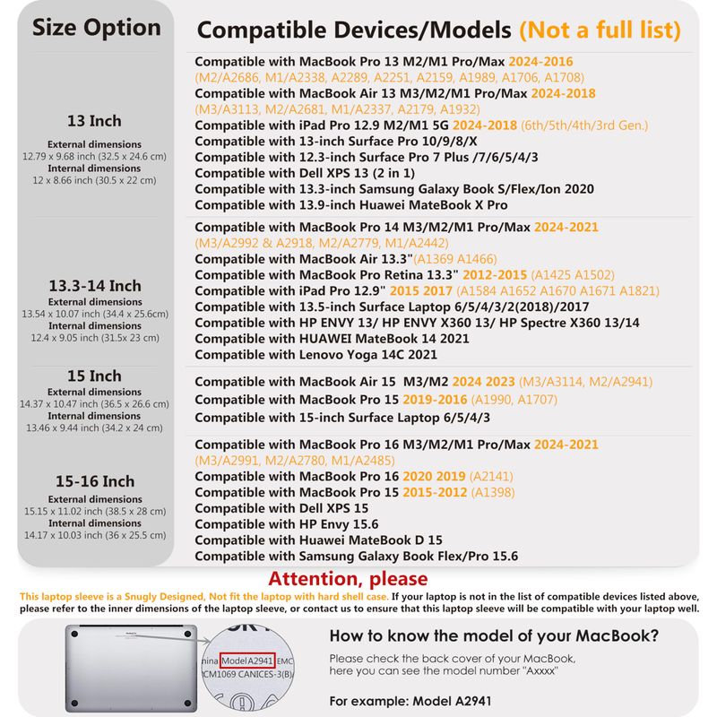 HYZUO - Funda para laptop de 12.3, 13, 13.3, 13.5, 15, 15.4 y 16 pulgadas con bolsa