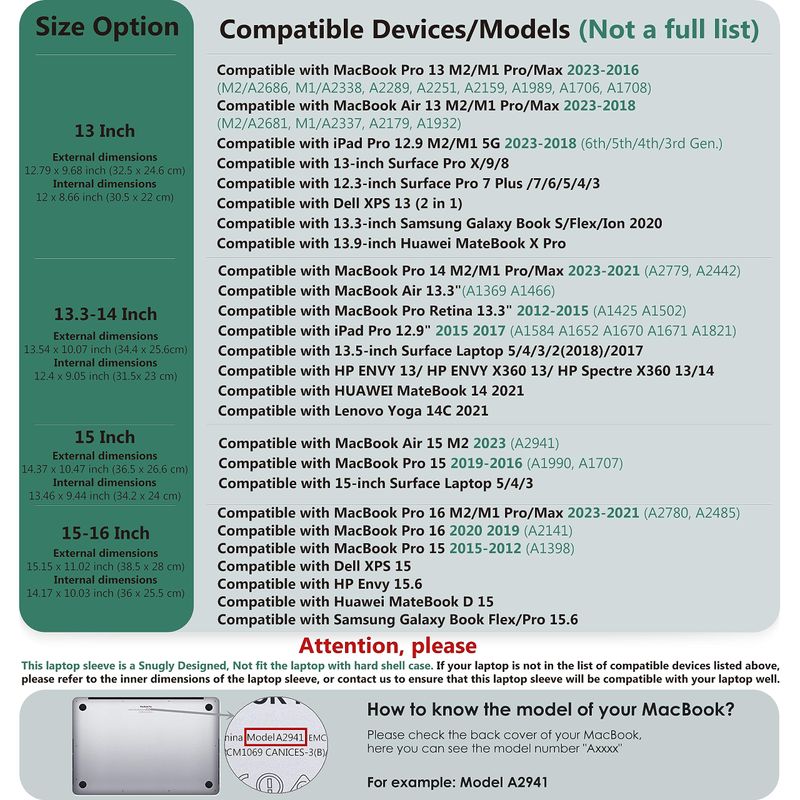 HYZUO - Funda para laptop de 12.3, 13, 13.3, 13.5, 15, 15.4 y 16 pulgadas con bolsa