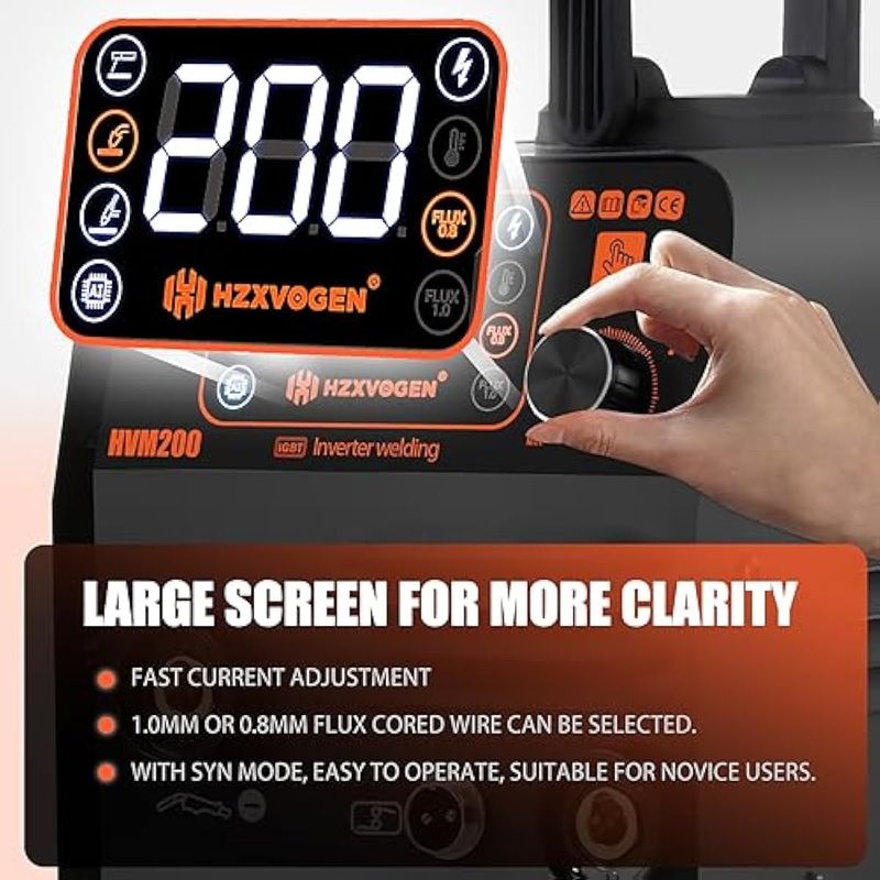 HZXVOGEN 200A Soldador MIG 110V Soldador de núcleo de fundente 3 en 1 Soldador MIG sin gas/Lift