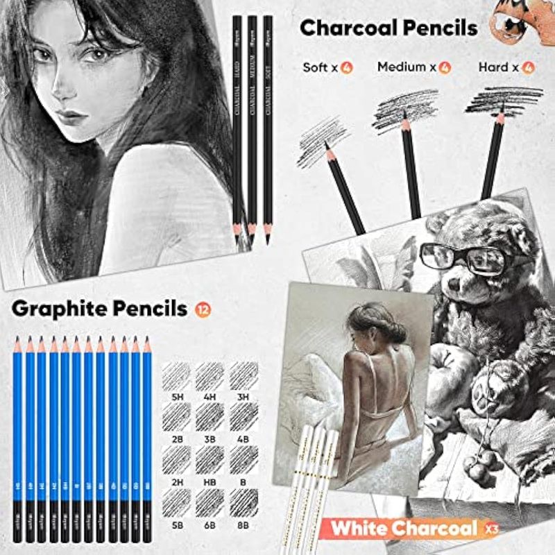 iBayam Paquete de 78 kits de dibujo para bocetos, suministros de arte profesional con 75 hojas, bloc