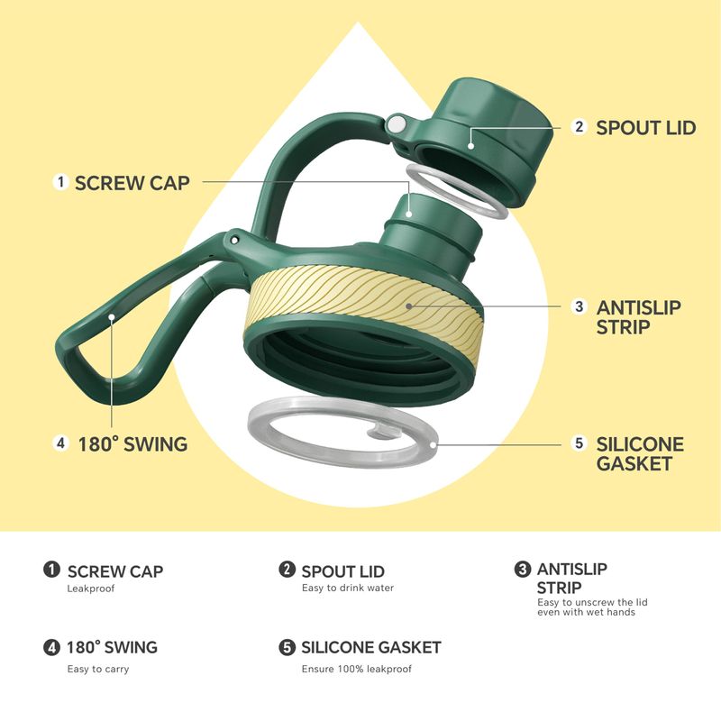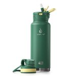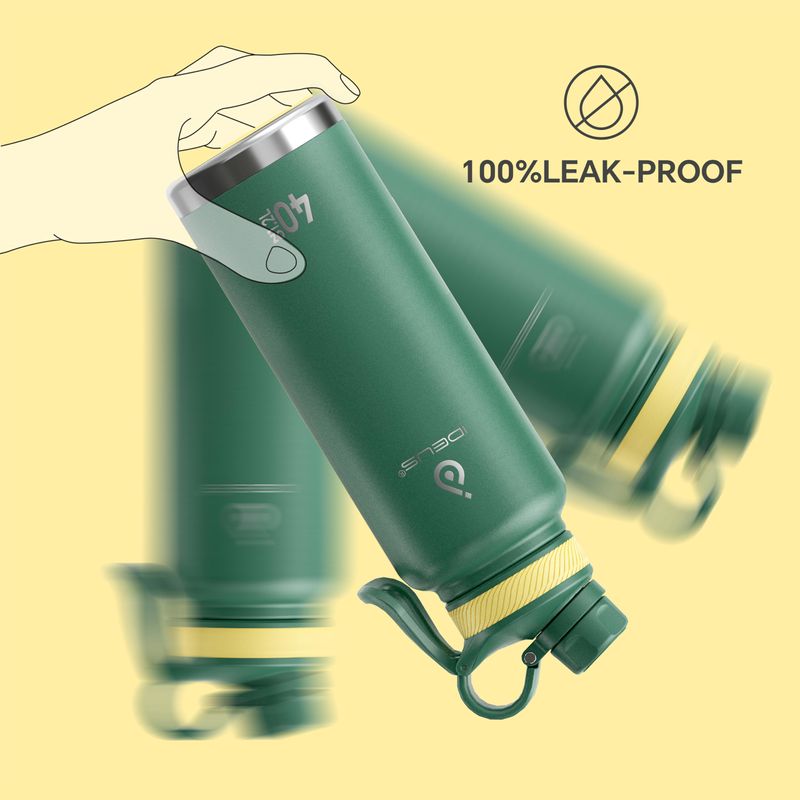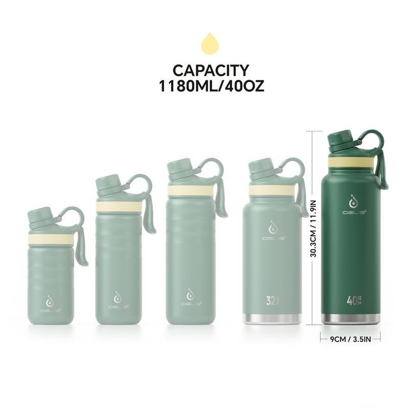 IDEUS Botella de agua aislada de acero inoxidable con 2 tapas a prueba de fugas, termo para