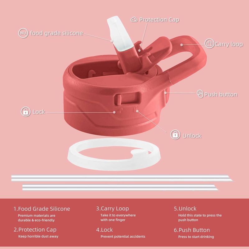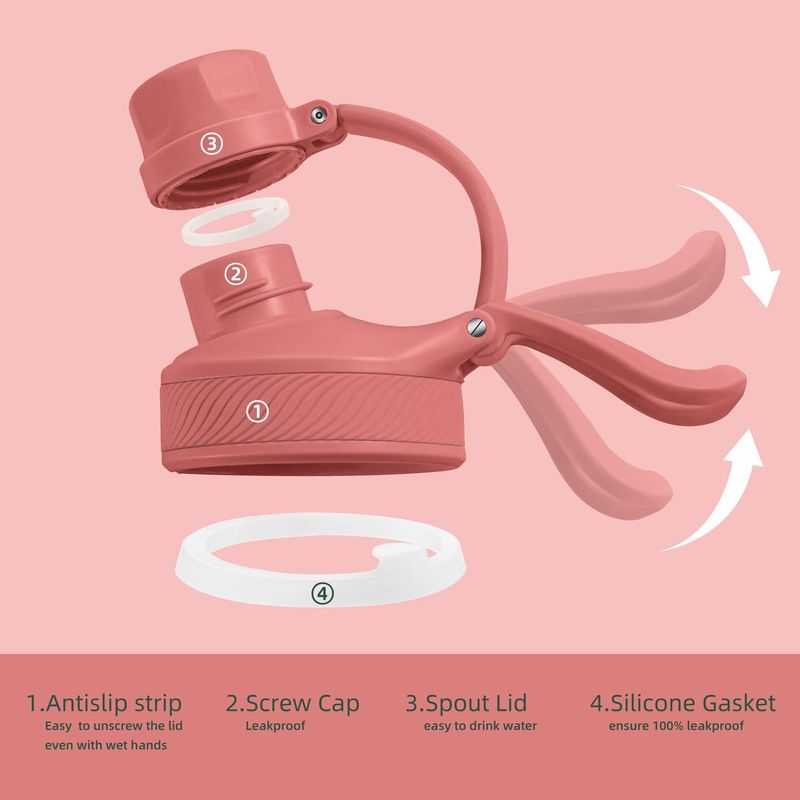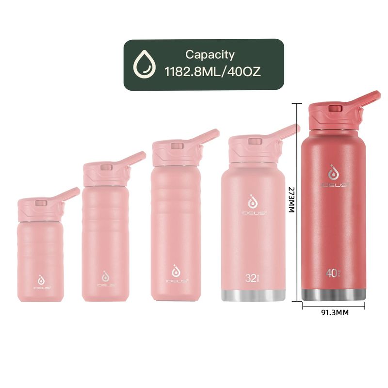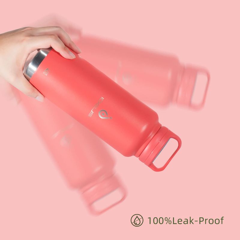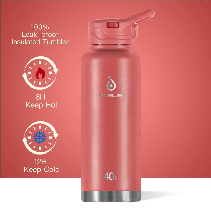 IDEUS Botella de agua aislada de acero inoxidable con 2 tapas a prueba de fugas, termo para