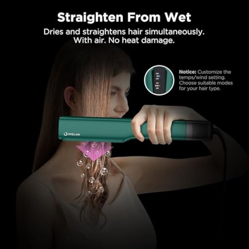 IG INGLAM Alisador de aire, estilo de cabello mojado, alisador de secador de pelo de 2.2 pulgadas,