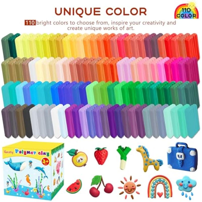 IGAIETY ARCILLA POLIMéRICA DE 110 COLORES PARA HORNO, KIT DE ARCILLA PARA HORNEAR, ARCILLA PARA HORNEAR, MODELADO, ARCILLA PARA MANUALIDADES CON HERRAMIENTAS Y ACCESORIOS DE ESCULTURA, 245 PIEZAS, NO