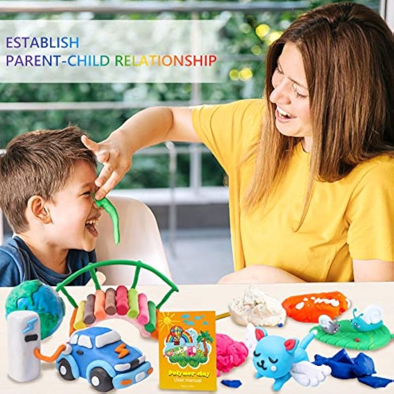 Kit de arcilla de plasticidad fuerte: nuestra arcilla para hornear horno es de gran plasticidad y larga duración. Puede mezclar los colores de arcilla polimérica para crear combinaciones de colores y degradados ilimitados. La arcilla para hornear es suave para que puedas hacer arcilla polimérica en cualquier forma, textura y detalle que desees. La arcilla de modelado para niños también se puede utilizar como una herramienta educativa y de aprendizaje. Este kit de arcilla puede ayudar a los niños a desarrollar habilidades sensoriales y táctiles, mejorar la imaginación espacial y la creatividad