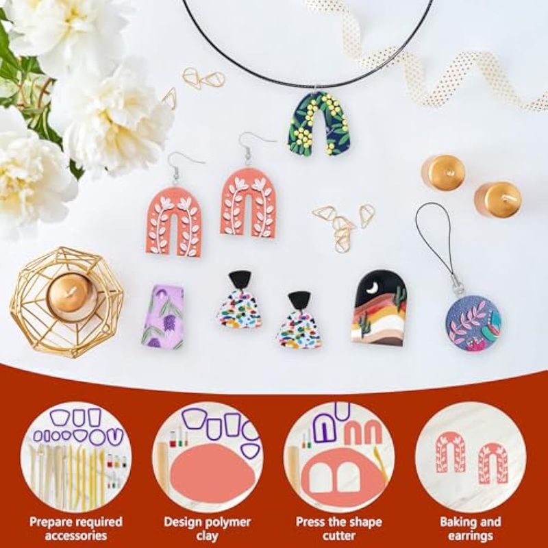 Kit completo de arcilla polimérica: nuestro kit de arcilla para modelar incluye una amplia gama de herramientas y accesorios para esculpir. Desde herramientas de tallado hasta moldes, tendrás todo lo que necesitas para agregar detalles y texturas intrincados a tus creaciones. Nuestro kit de iniciación de arcilla polimérica viene con cortadores de arcilla para hornear, campanas, cuentas, perlas, ganchos para las orejas, cordón para collar, horquilla, soporte para broches, anillo, llavero, molde de silicona, agujas de ojos, raspador, cadenas de teléfono, bandeja colgante, hoja de plástico, rodillo de rodillo, manual de usuario y mucho más