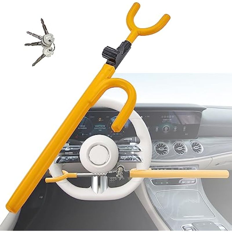 Alta calidad: nuestro dispositivo de bloqueo para volante está hecho de acero de alta calidad, resistente y duradero, funda de goma suave que evita rayar tu volante mientras está en uso.