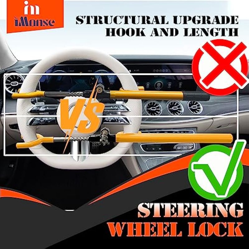 IMONSE CERRADURA DE VOLANTE PARA AUTOMóVIL, BLOQUEO DE SEGURIDAD ANTIRROBO, DISPOSITIVO DE BLOQUEO DE AUTOMóVIL APTO PARA AUTOMóVILES, CAMIONES, CAMIONETAS Y SUV, RESISTENTE Y ALARGADO