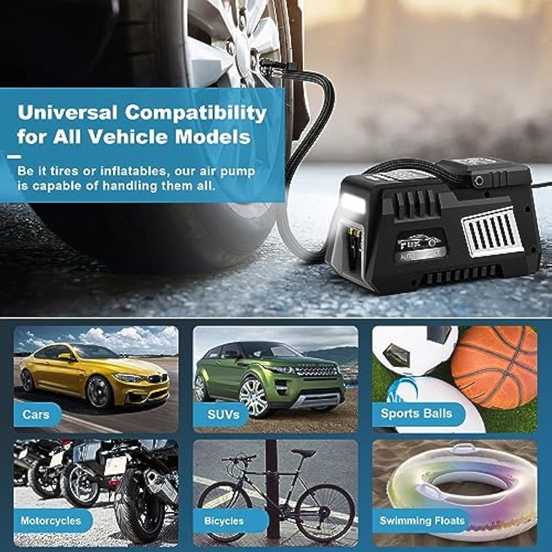 Cable de alimentación ultra largo y almacenamiento portátil: una longitud total de 10.83 pies de largo proporciona un fácil acceso a los neumáticos delanteros y traseros, ahorrando tiempo y energía. El tamaño compacto del compresor permite que se almacene fácilmente en cualquier lugar de un vehículo. Durante tu viaje en coche, lleva nuestro pequeño compresor de aire, que es fácil de usar y mantiene tus neumáticos en buenas condiciones. Puedes comprar un pequeño inflador de neumáticos a tus amigos o familiares.