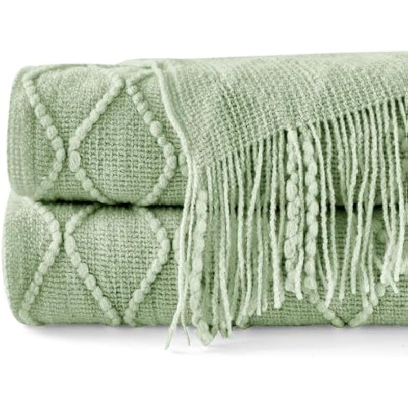 HOGARBLANQUERIACUBRECAMAInhand Manta de punto para sofá y cama, manta de punto suave y acogedora con borla, color gris