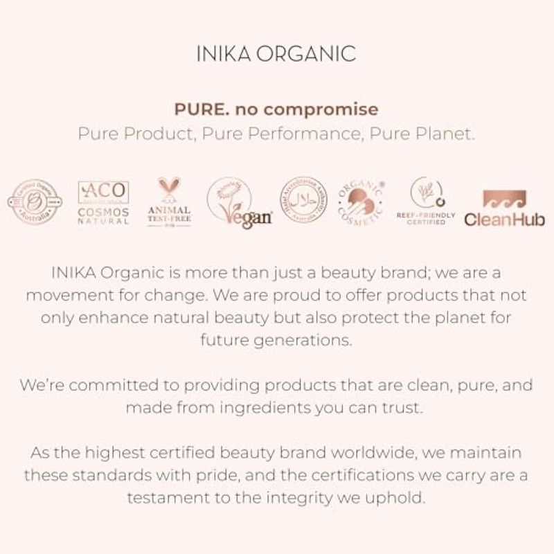 INIKA Base de maquillaje líquida orgánica de cobertura completa con ácido hialurónico y aceite de