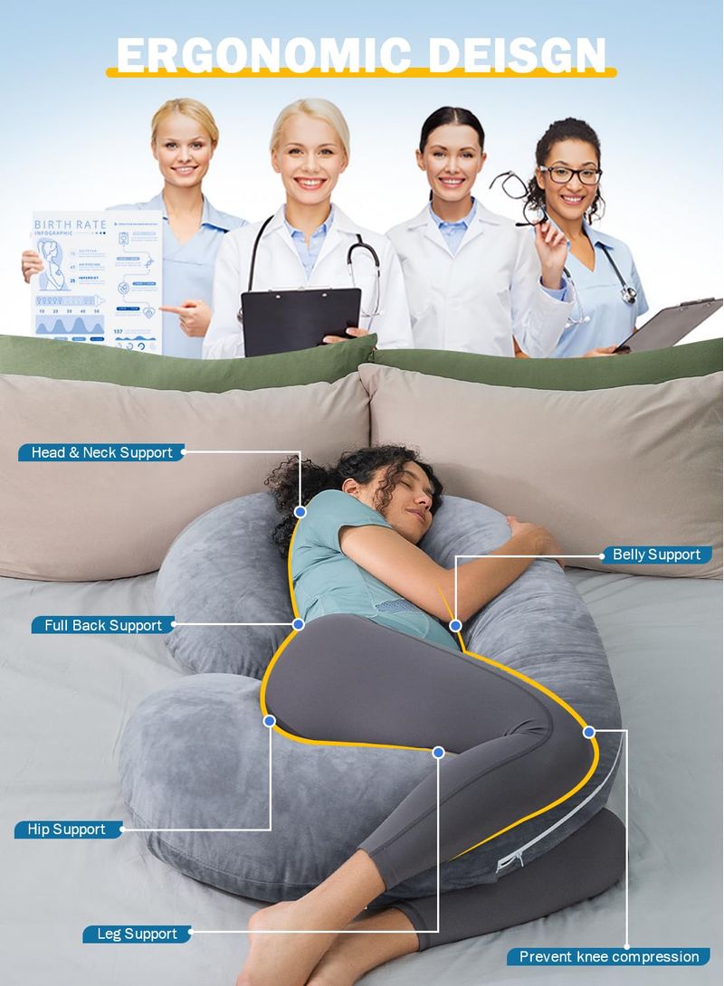 INSEN Almohada de embarazo, almohada corporal de maternidad para dormir, almohada corporal en forma