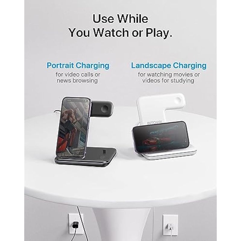 INTOVAL CHARGING STATION FOR APPLE IPHONE/IWATCH/AIRPODS, 3 IN 1 WIRELESS CHARGER FOR IPHONE15/14/13(PRO, PRO MAX) 12/11/XS/XR, IWATCH9/8/ULTRA/7/6/SE/5/4/3/2, AIRPODS PRO2/PRO1/3/2/1(Z5 WHITE)