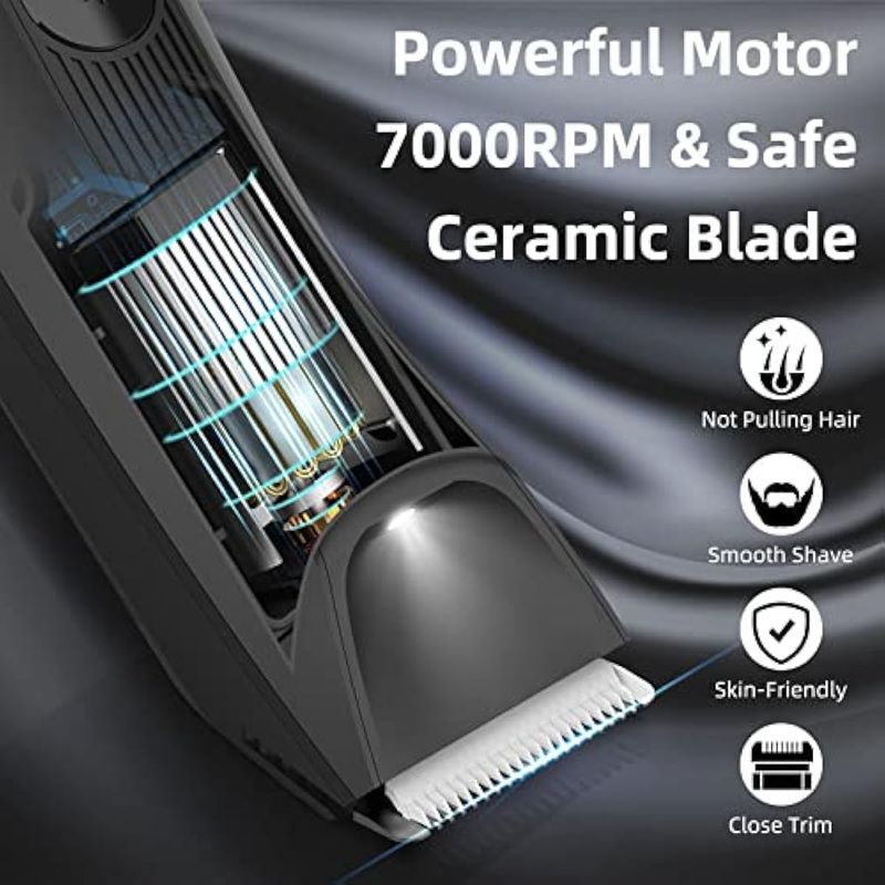 INVJOY HT-872 Manscape Trimmer para hombre: experimenta lo último en seguridad, comodidad y rendimiento con la recortadora de pelo Pubic INVJOY para hombres. Con sus cuchillas de cerámica suave anticortes, potente motor que funciona a 7000 RPM e iluminación para ayudarte a ver lo que estás haciendo, perfecto para usar en áreas sensibles como debajo de la cintura, área del escroto, glúteos, ingle y axilas. Comience siempre con el peine de protección para recortar las áreas sensibles, asegurando una seguridad y comodidad óptimas.