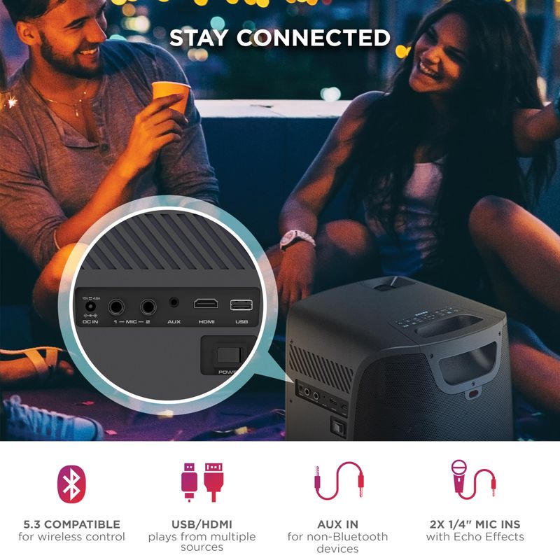ION Proyector LED portátil para exteriores con altavoces de 70 W, Bluetooth, batería recargable,