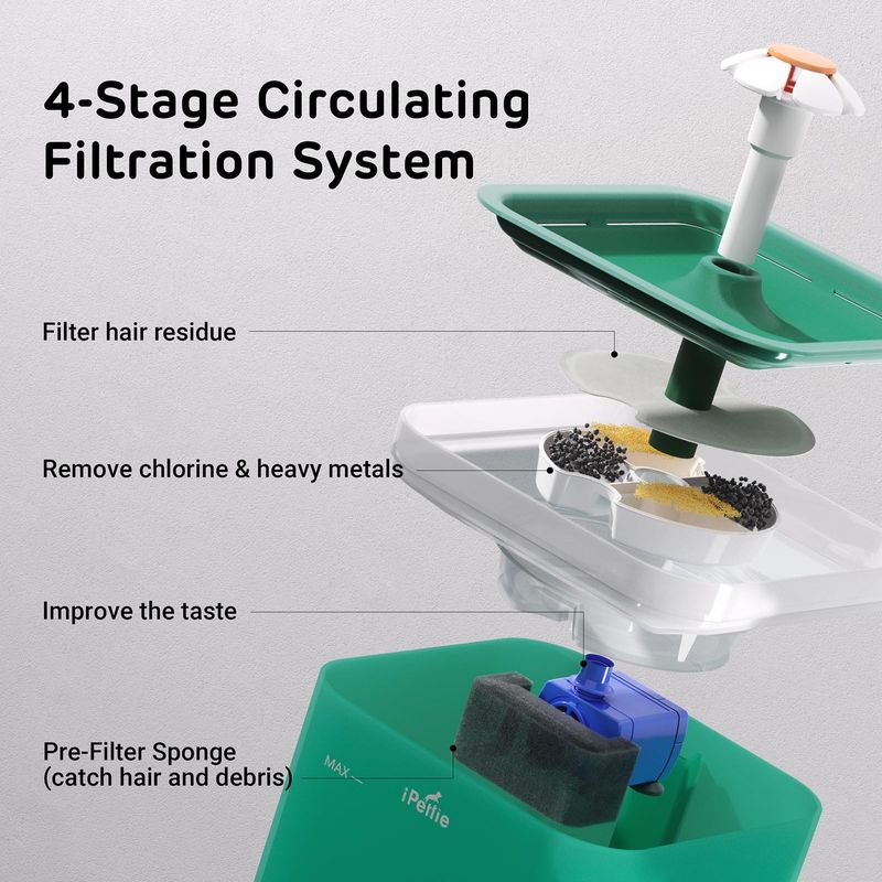 iPettie Neverland - Fuente de agua para gatos con luz LED, 67 oz/2.0 L, fuente de agua ultra