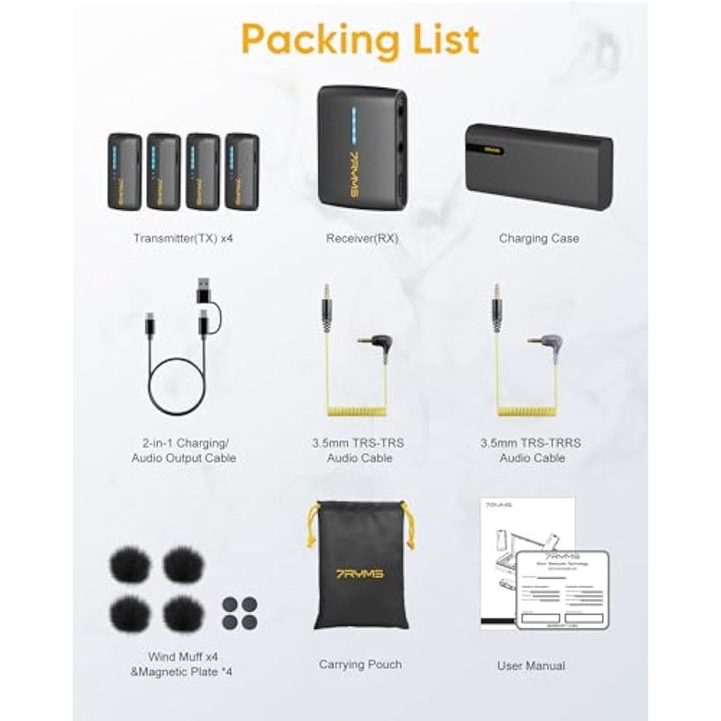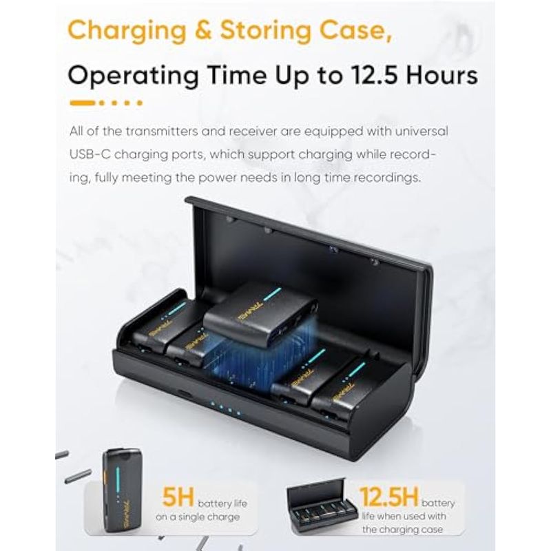 iRay DW40 Micrófono Lavalier inalámbrico de cuatro canales con funda de carga, cancelación de ruido,